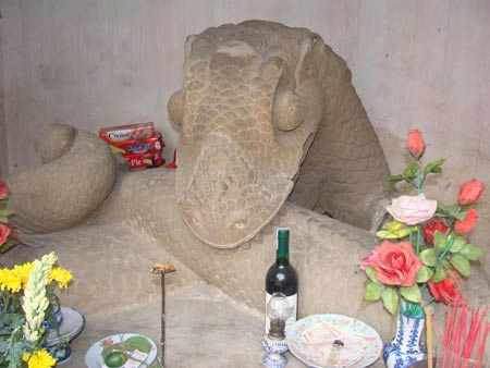Về sau, đền thờ cụ được xây dựng ở ngay chếch phía sau. Vào năm 1995, khi xây cổng cho đền và chùa, chính bà con đã phát hiện ra hai khúc thân rồng đá. Nhưng sau đó người dân lấp lại và không nghĩ đến việc tìm thêm…